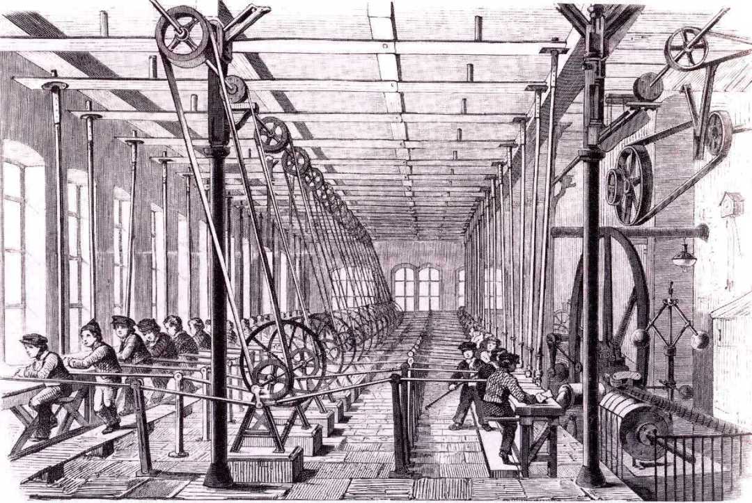La forte crescita del settore tessile attira una crescente serie di investimenti. Questi si tramutano in costruzione di fabbriche, ovvero locali ampi in grado di concentrare in un solo luogo un ampio meccanismo produttivo.